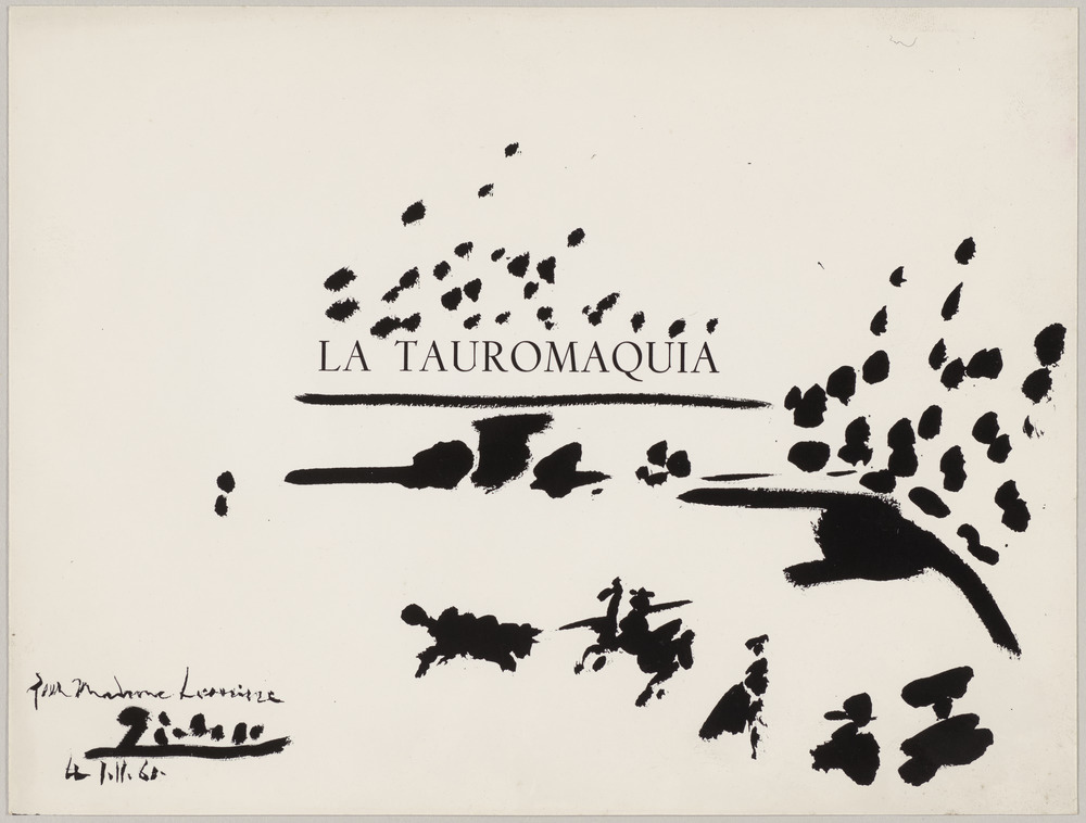 [Page de titre] de "La tauromaquia" avec dessins à l'encre de Chine représentant une scène de corrida, 1er novembre 1961