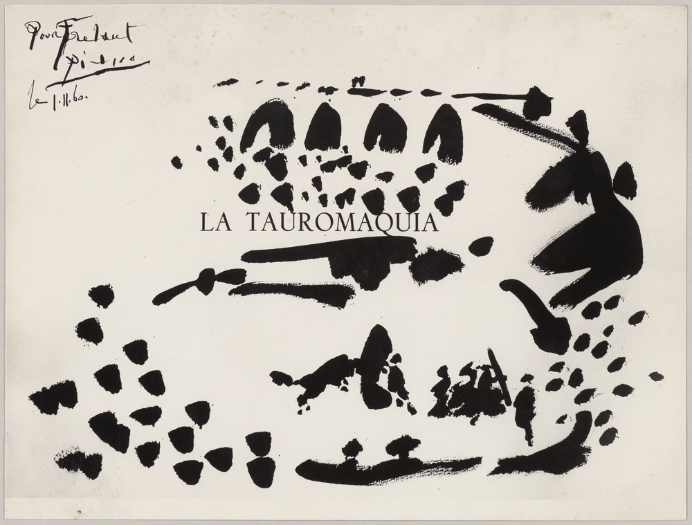 Copié dans le presse-papier :[Page de titre] de "La tauromaquia" avec dessins à l'encre de Chine d'une scène… - s.d. - https://cep.museepicassoparis.fr/explorer/page-de-titre-de-la-tauromaquia-avec-dessins-lencre-de-chine-dune-scene-apph10989
