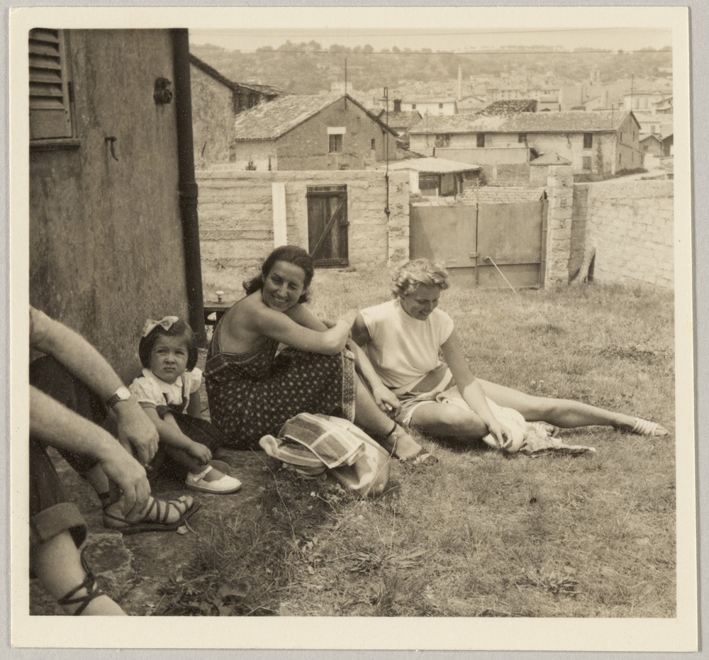 Paloma Picasso, Françoise Gilot et Lee Miller dans le jardin de l'atelier du Fournas, Vallauris, en juillet-août 1953