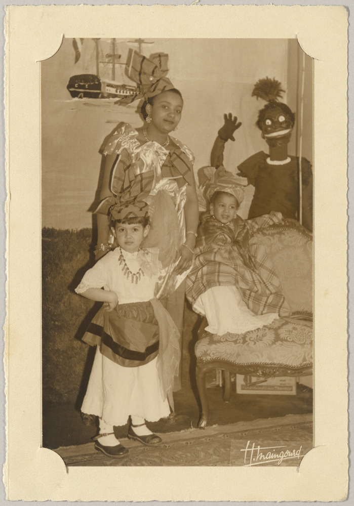 Paloma Picasso, une petite fille et une jeune femme en costumes guadeloupéens, en [1953]