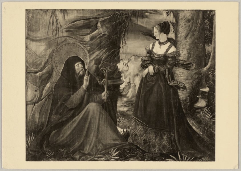 Panneau gauche extérieur "La Tentation de saint Antoine par une femme", retable de Saint-Antoine ermite de Niklaus Manuel, Kunstmuseum de Berne