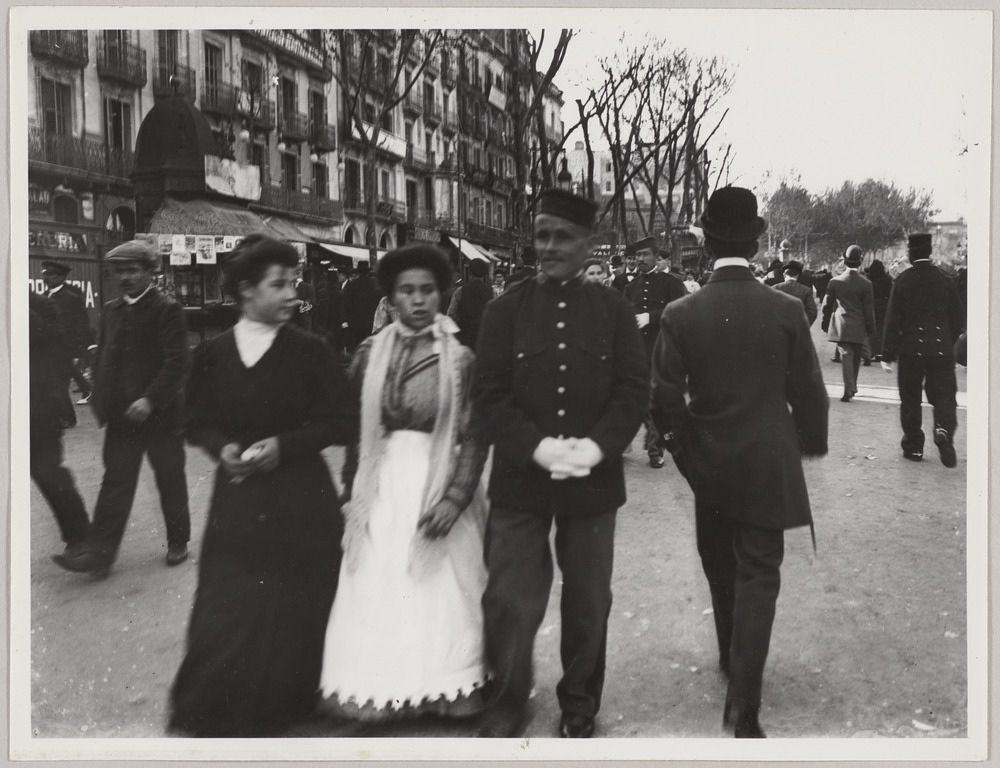 Passants de La Rambla de Canaletes, Barcelone, en 1907-08