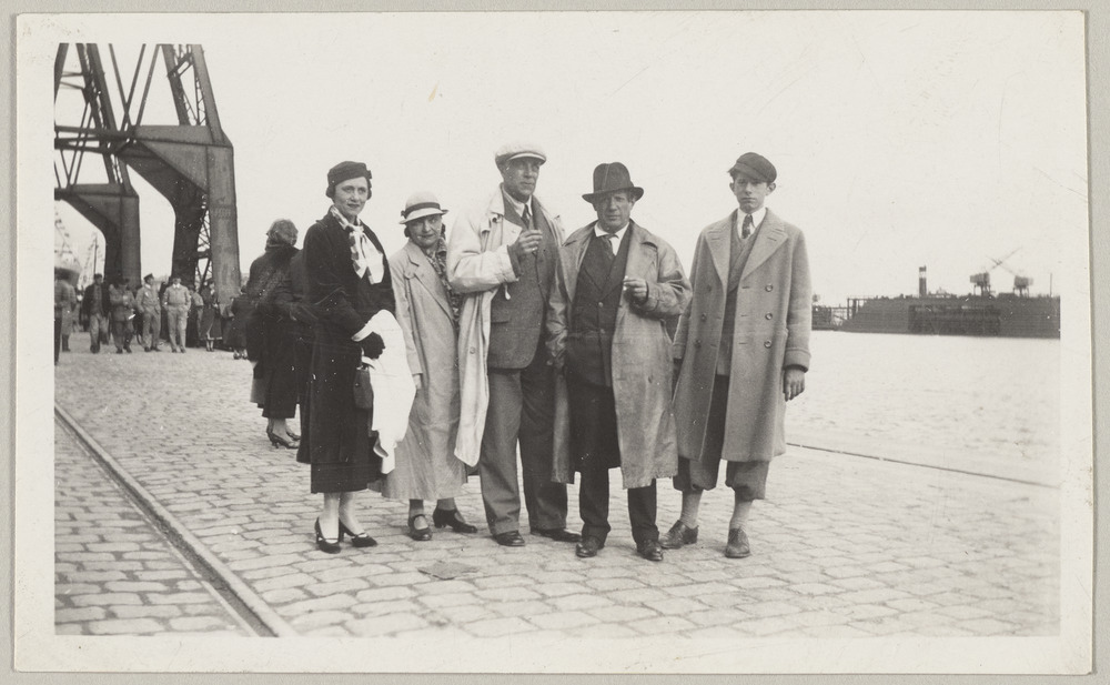 Paul, Olga et Pablo Picasso avec Georges et Marcelle Braque sur les docks de [Dieppe ou du Havre], en [1933-35]