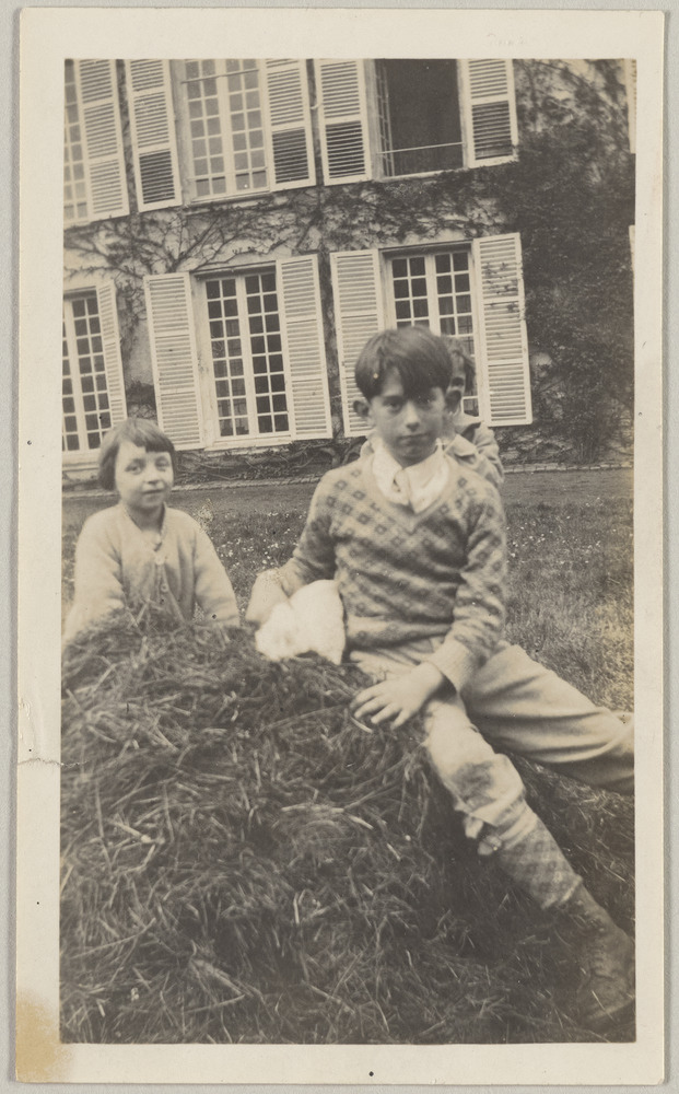 Paul Picasso avec Germaine Lascaux et un autre enfant non identifié, dans le jardin du château de Boisgeloup, Gisors, début des années 1930