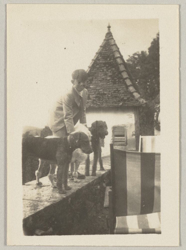 Paul Picasso avec les chiens Basket, Elfe et Noisette dans le jardin de Gertrude Stein et d'Alice Toklas, Bilignin, en été 1931