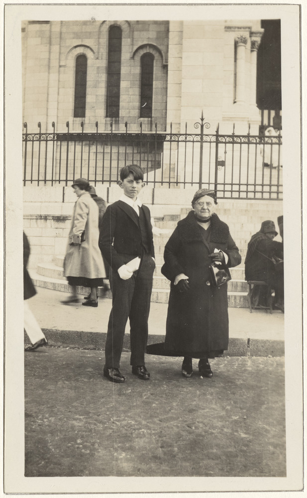Paul Picasso avec sa grand-mère, Maria Ruiz Vilato, le jour de sa première communion, devant la Basilique du Sacré-Coeur, le 28 avril 1932