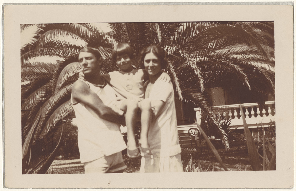 Paul Picasso dans les bras de ses parents Pablo et Olga dans le jardin de la Villa Belle Rose, Juan-les-Pins, en été 1925