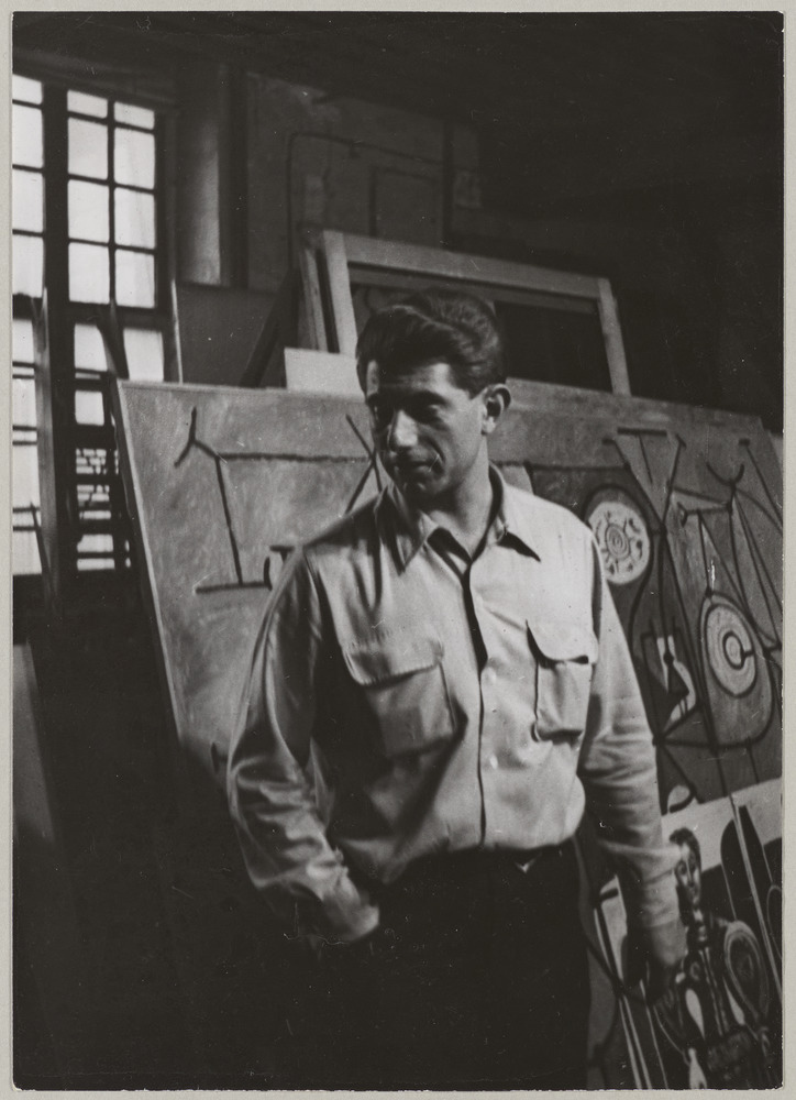 Paul Picasso devant l'huile sur toile "la cuisine" dans l'atelier des Grands-Augustins, Paris, en [1948]