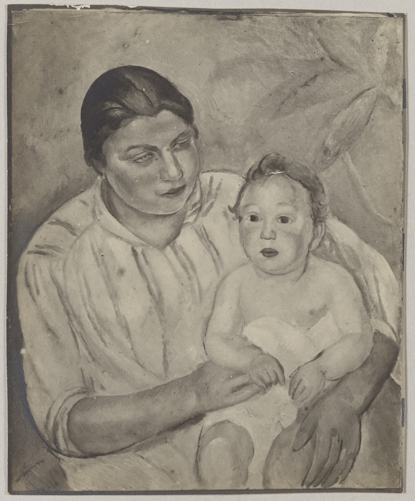 Peinture d'une mère tenant son enfant sur ses genoux, [1917]