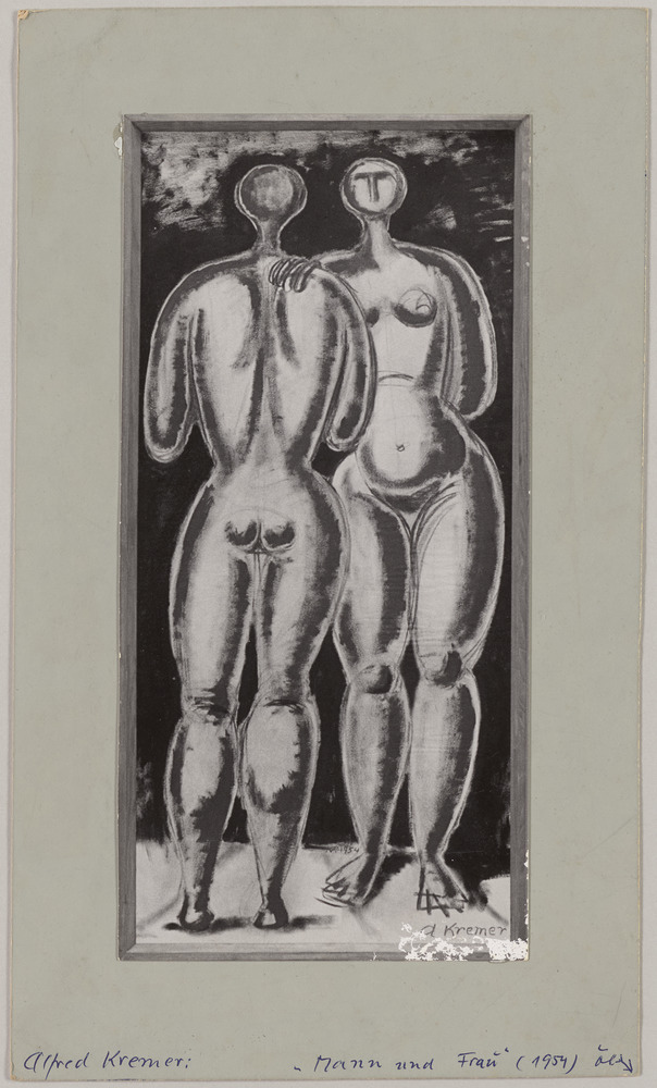 Annotation manuscrite au recto du carton, en bas : "Alfred Kremer : "Mann and Frau (1954) "