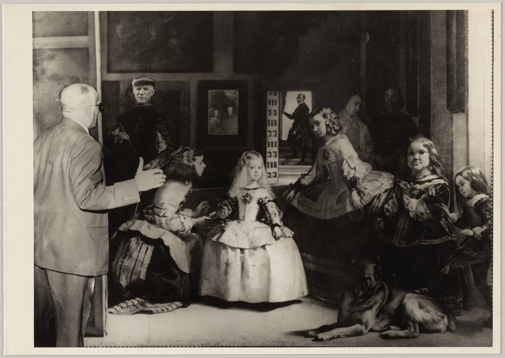 Photomontage de la tête de Pablo Picasso et de Jaime Sabartés avec la peinture "Les Ménines" de Diego Velázquez