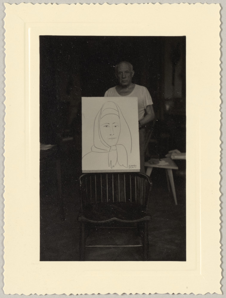 Picasso derrière la lithographie "L'espagnole" du 4 octobre 1960