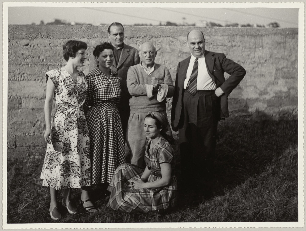 Picasso entouré de deux hommes et deux femmes, Françoise Gilot à ses pieds, Le…