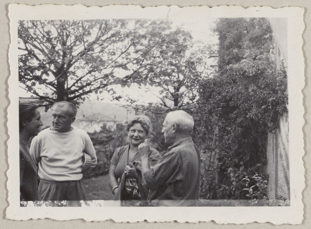 Picasso, Françoise Gilot avec Marcel Boudin et Henriette Gomes dans le jardin…