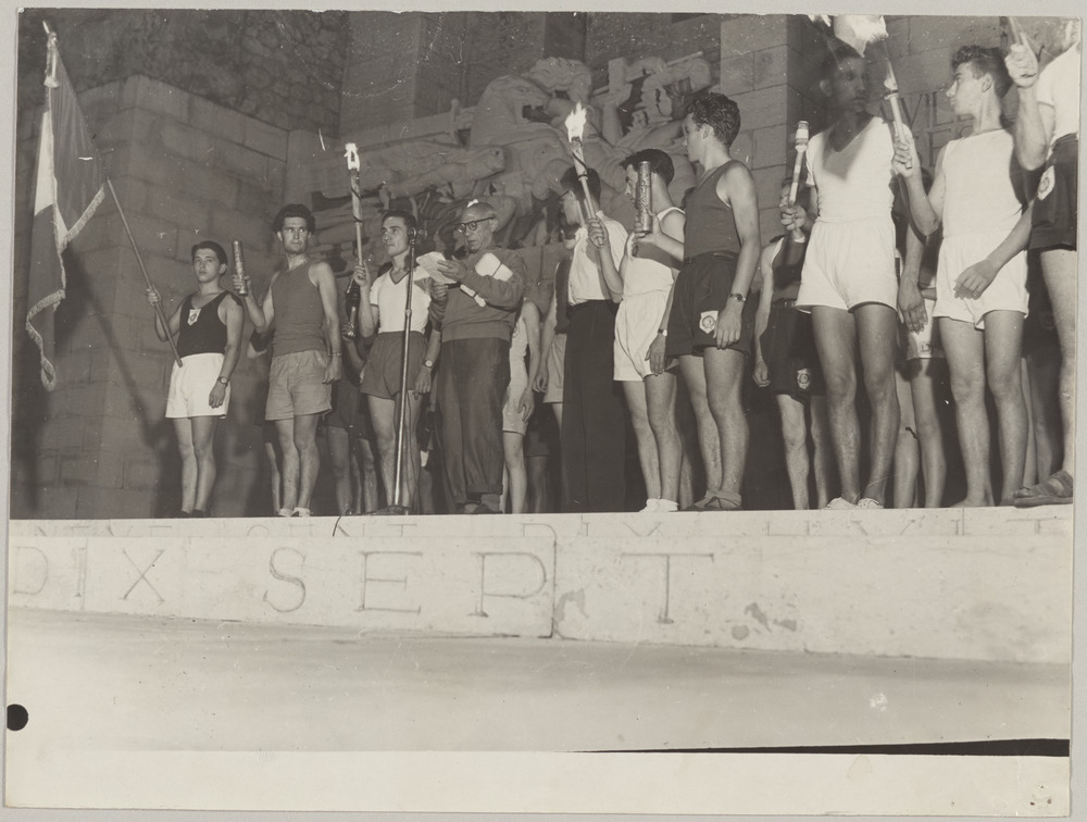 Annotation manuscrite au dos, centrée en haut : "Rencontres Franco-italiennes de la Jeunesse Nice. Août 1950"