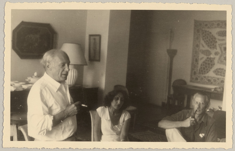 Picasso, René Batigne et une amie dans le salon des Batigne, Vallauris, circa 1950