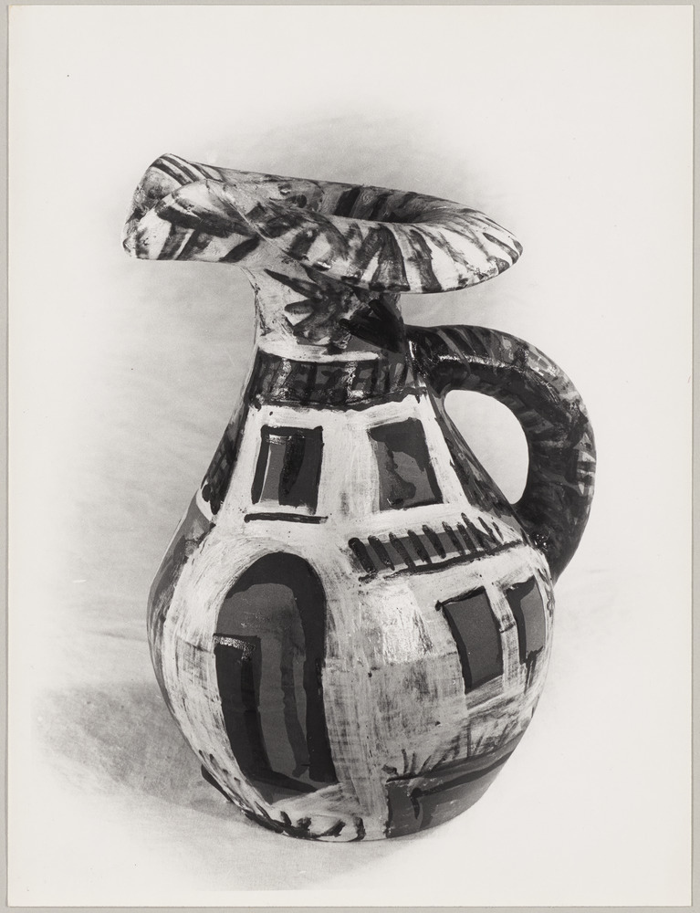 Pichet en céramique avec une anse et un décor paysage, 10 février 1954