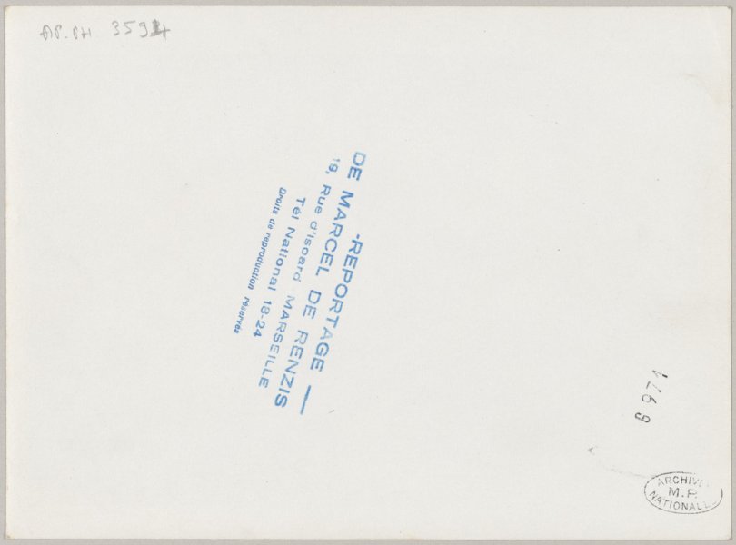 Cachet au dos, centré : "REPORTAGE DE MARCEL DE RENZIS", Marseille