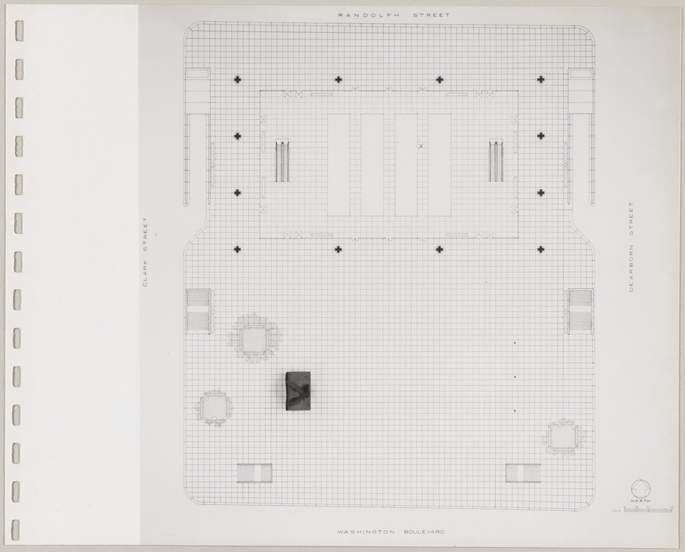 Planche 2 de l'album photographique du "Chicago Picasso" : Plan au sol de la…