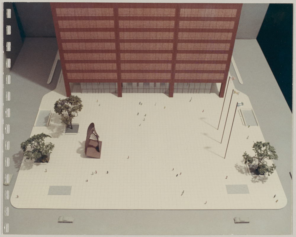 Planche 3 de l'album photographique du "Chicago Picasso" : maquette de la sculpture "Tête" du Chicago Civic Center (Daley Center) sur la Daley Plaza