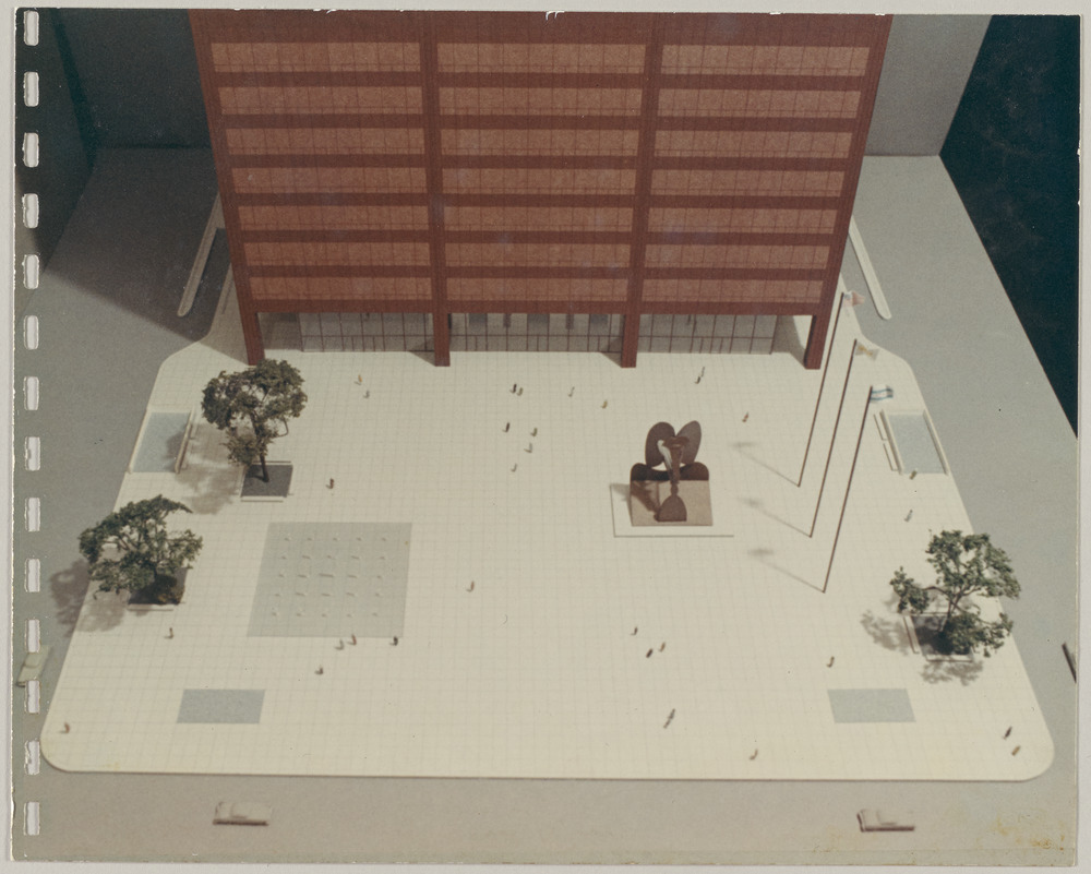 Planche 8 de l'album photographique du "Chicago Picasso" : maquette de la sculpture "Tête" du Chicago Civic Center (Daley Center) sur la Daley Plaza