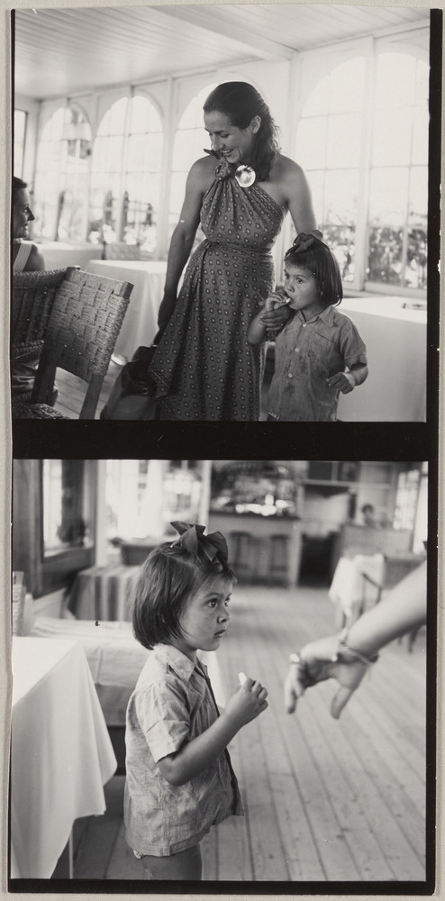 Planche-contact de Françoise Gilot avec sa fille Paloma Picasso au restaurant…