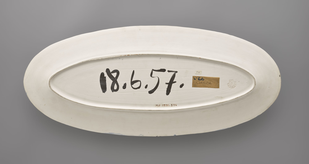 Copié dans le presse-papier :Plat long décoré d'une scène de tauromachie - Pablo Picasso - 18 juin 1957 - https://cep.museepicassoparis.fr/explorer/plat-long-decore-dune-scene-de-tauromachie-mp1990-374