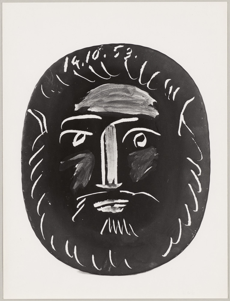 Plat rectangulaire en céramique "Tête d'homme gravée sur fond noir", 14 octobre 1953