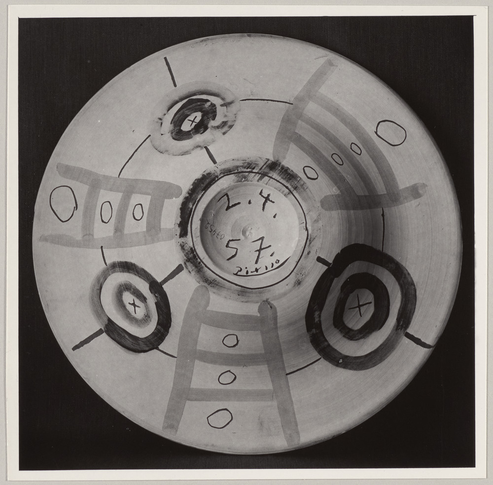 Plat rond en céramique avec des décorations, Madoura, 2 avril 1957