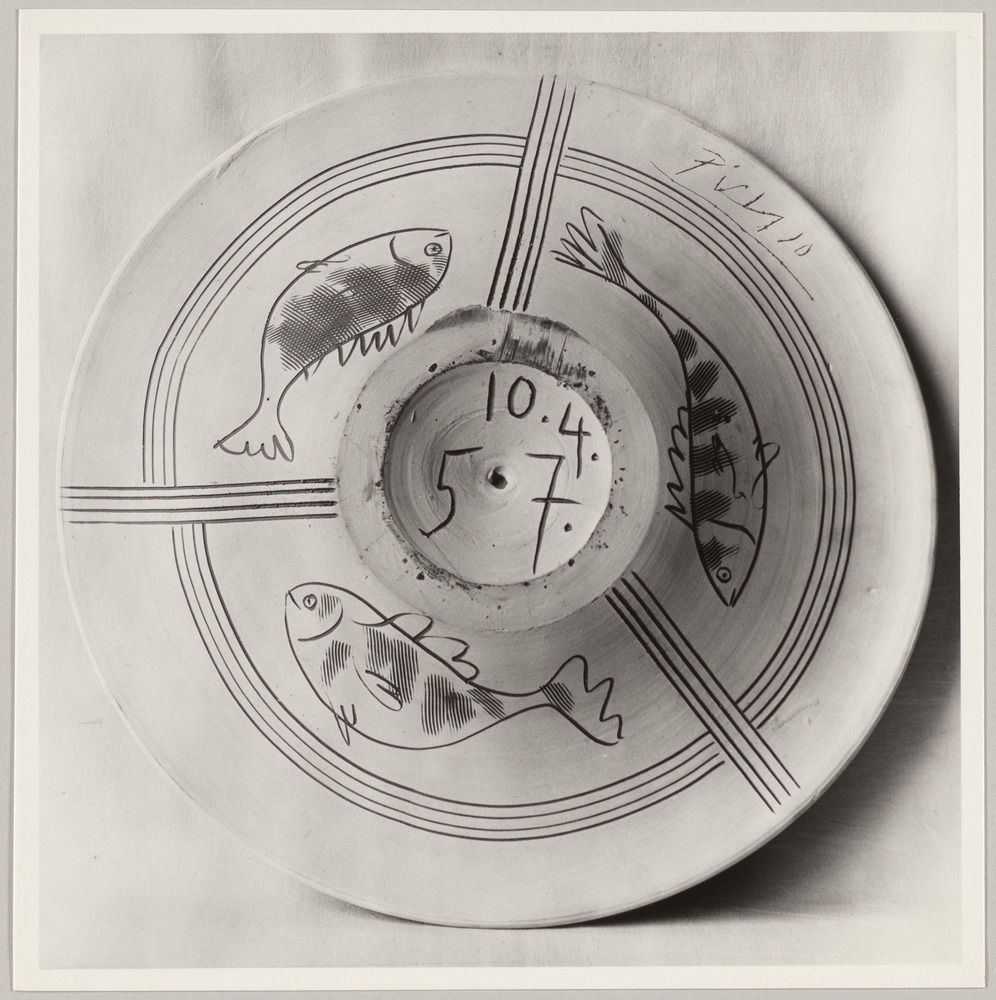 Plat rond en céramique "Poissons sur fond terre", Madoura, 10 avril 1957.