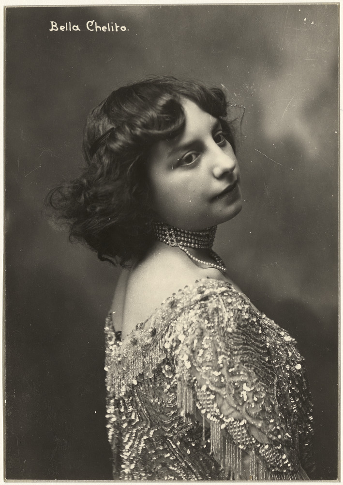 Portrait de Bella Chelito de trois-quarts, dans les années 1900-1910