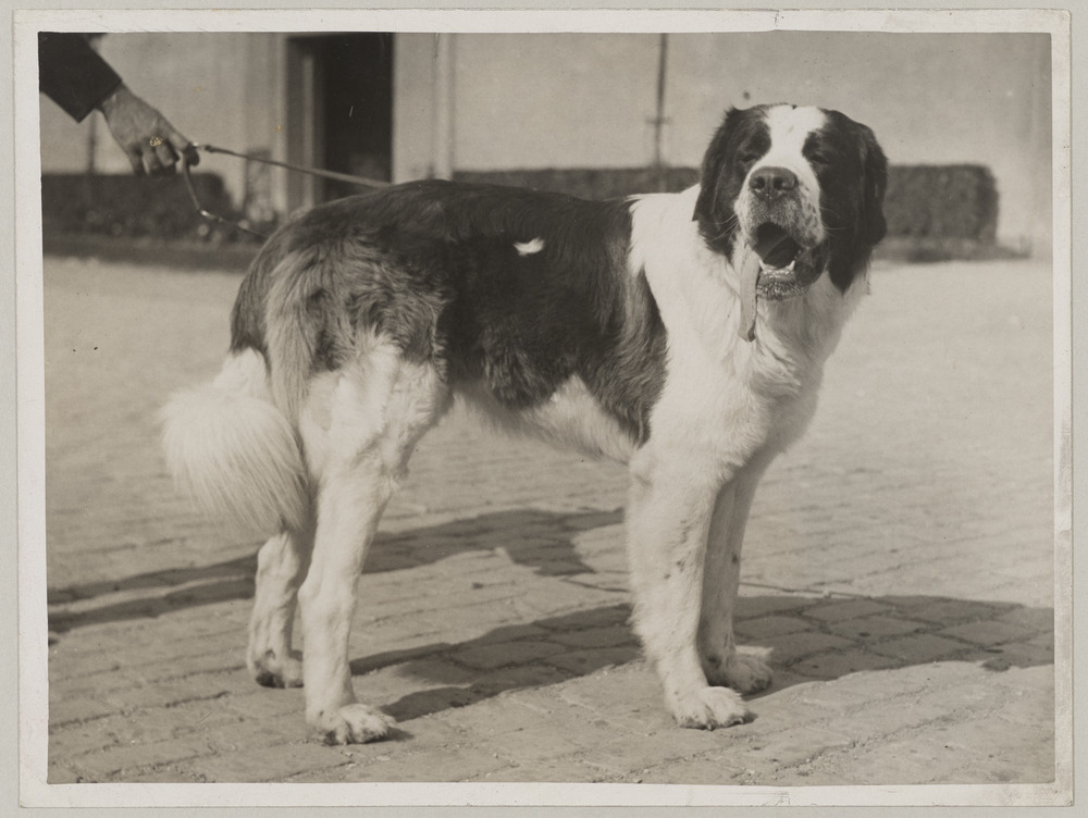 Portrait de Bob, le chien des pyrénées, dans le parc de Boisgeloup, Gisors, début des années 1930