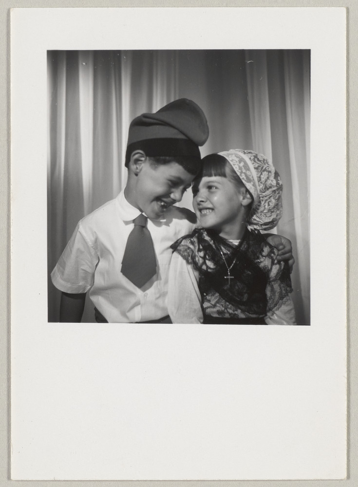 Portrait de Claude et Paloma Picasso en costumes catalans, dans le studio de Studio Visages, rue de l'Ange, Perpignan, en août 1954