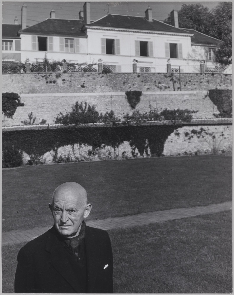 Portrait de Daniel-Henry Kahnweiler dans son jardin, au prieuré de Saint Hilaire, Chalo-Saint-Mars, le 21 octobre 1962
