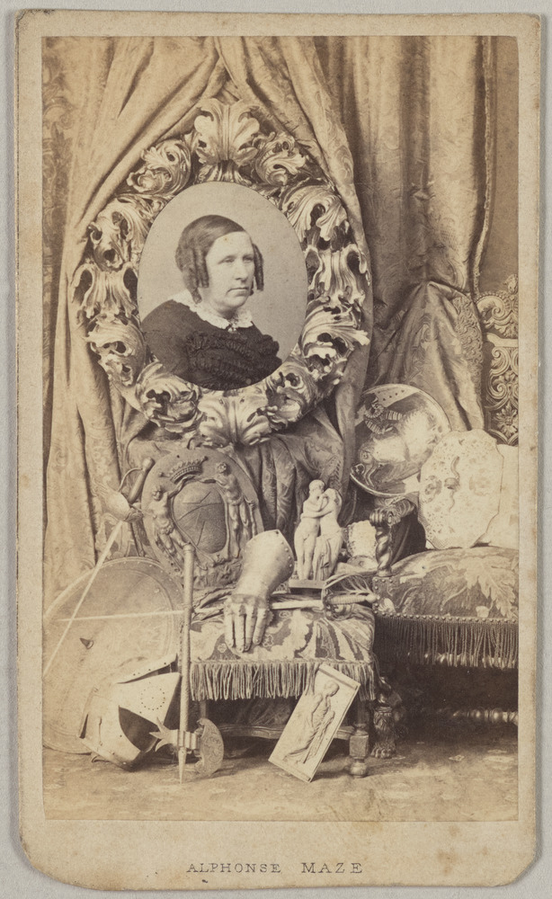 Portrait de femme en buste, en médaillon dans un décor