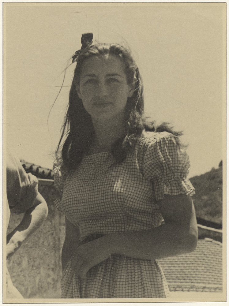 Portrait de Françoise Gilot dans la cour de l'atelier de Madoura, Vallauris