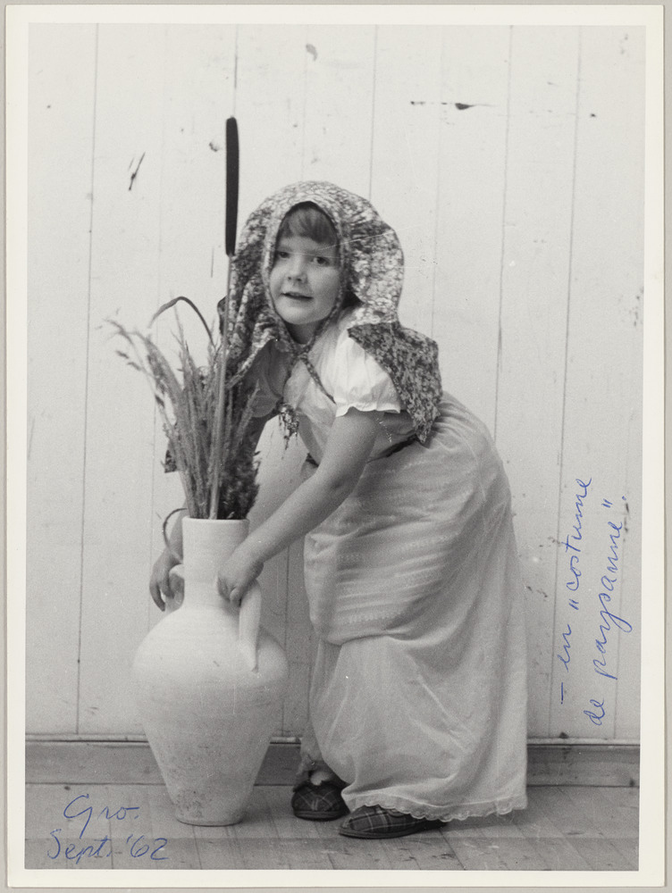 Portrait de Gro, la fille de Carl Nesjar, en costume de paysanne, [Oslo], en septembre 1962