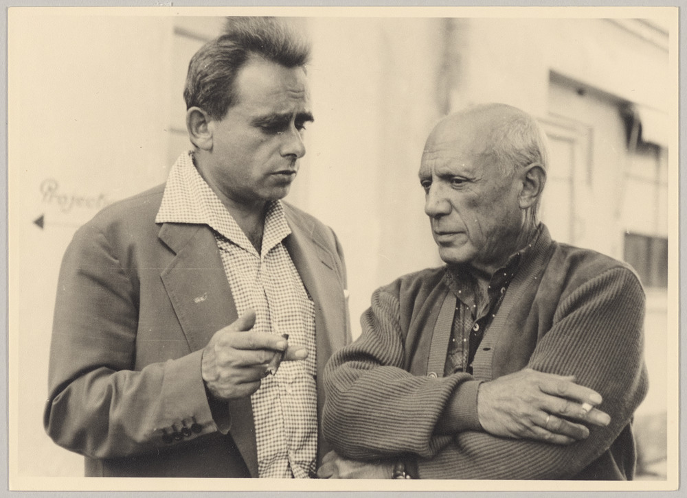 Portrait de Henri-Georges Clouzot et Picasso devant le studio de la Victorine, Nice, en 1955