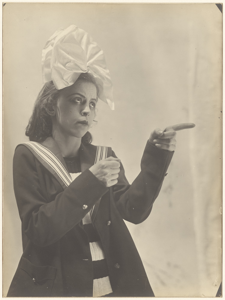 Portrait de la danseuse Maria Chabelska dans le rôle de "La petite fille américaine", dans le ballet "Parade", en 1917