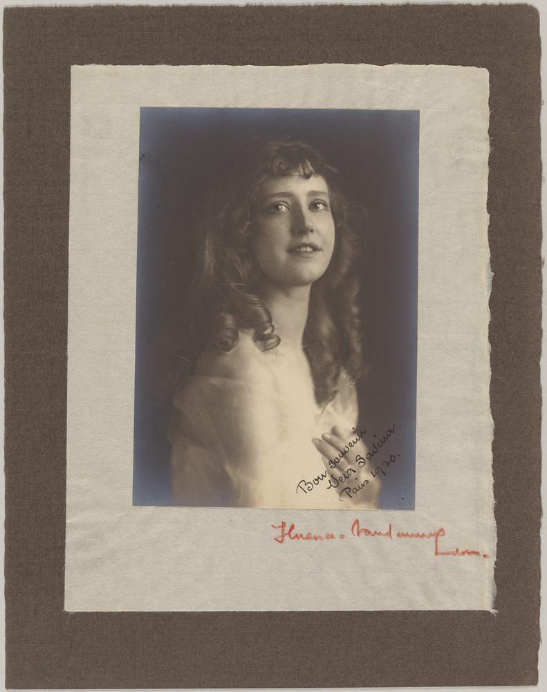 Annotation manuscrite au recto du tirage, en bas à droite : "Bon souvenir Vera Savina Paris 1920"