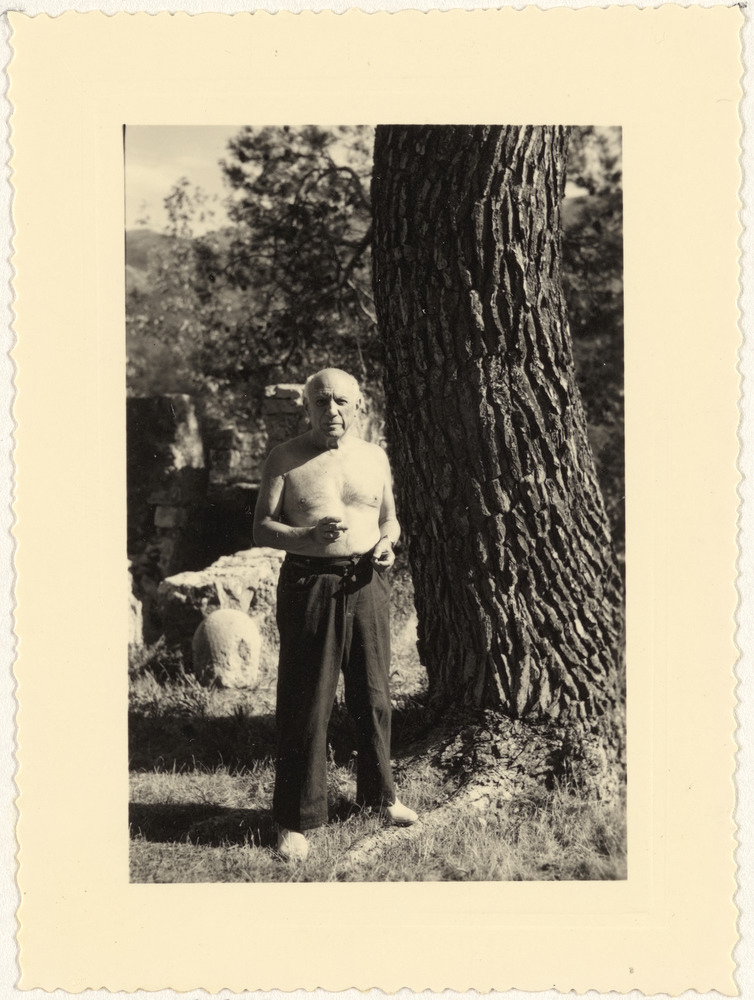 Portrait de Pablo Picasso à côté d'un arbre du jardin du Château de…