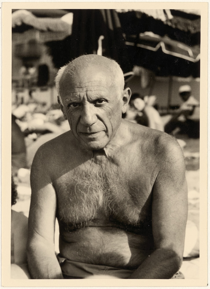 Portrait de Pablo Picasso en maillot de bain sur la plage, [dans les années 1950]