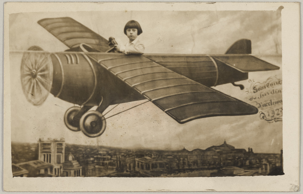 Portrait-souvenir de Paul Picasso pilotant un avion, au Jardin d'acclimatation du Bois de Boulogne, Paris, en 1925