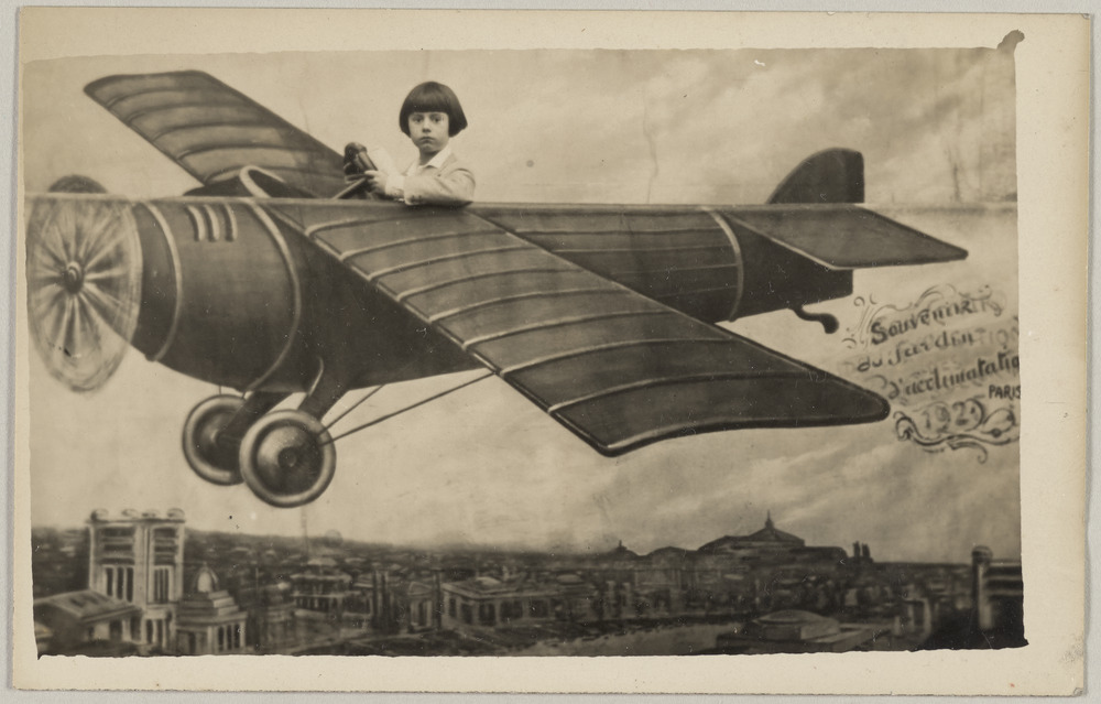 Portrait-souvenir de Paul Picasso pilotant un avion, au Jardin d'acclimatation du Bois de Boulogne, Paris, en 1925