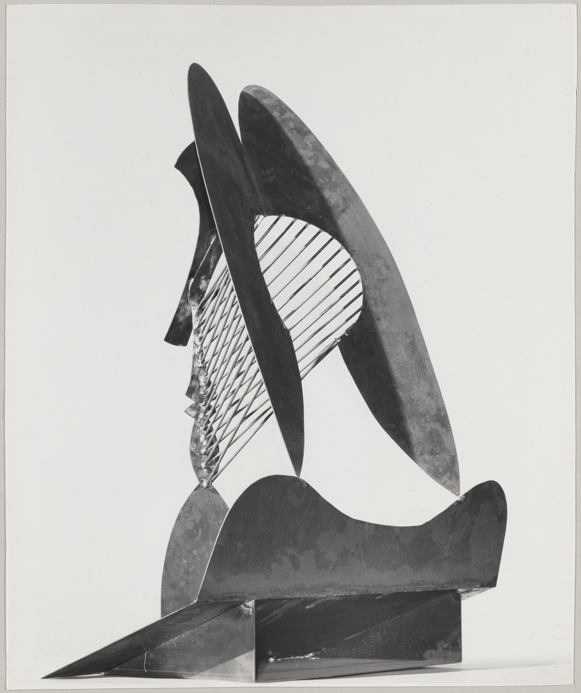 Profil gauche de la "Tête" de la maquette de la sculpture du Chicago Civic Center en acier soudé, Mougins, 1962-1964