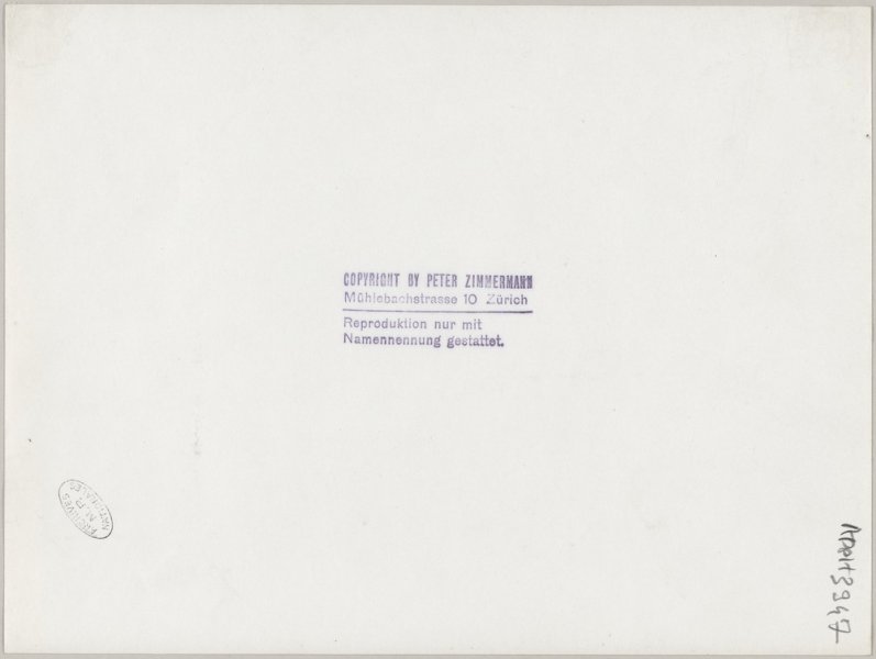 Cachet au dos, centré : "PETER ZIMMERMANN", Zürich