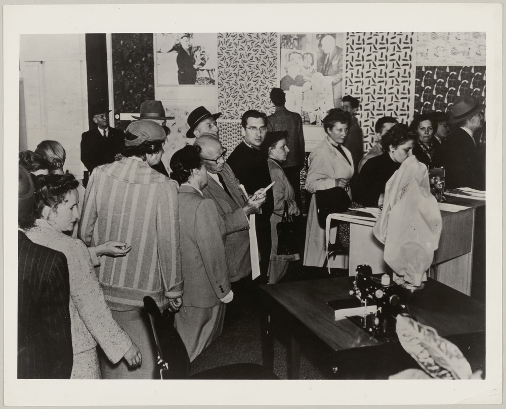 Public lors de l'exposition "Artists in Fabrics" au Brooklyn Museum, en 1955-56