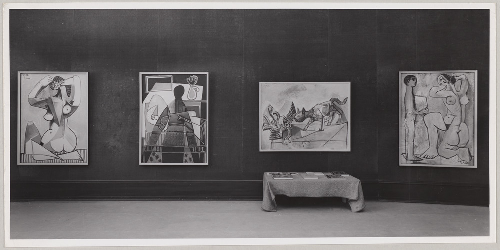 Quatre oeuvres présentées lors de l'exposition Picasso à la galerie Rosengart à Lucerne, en été 1956