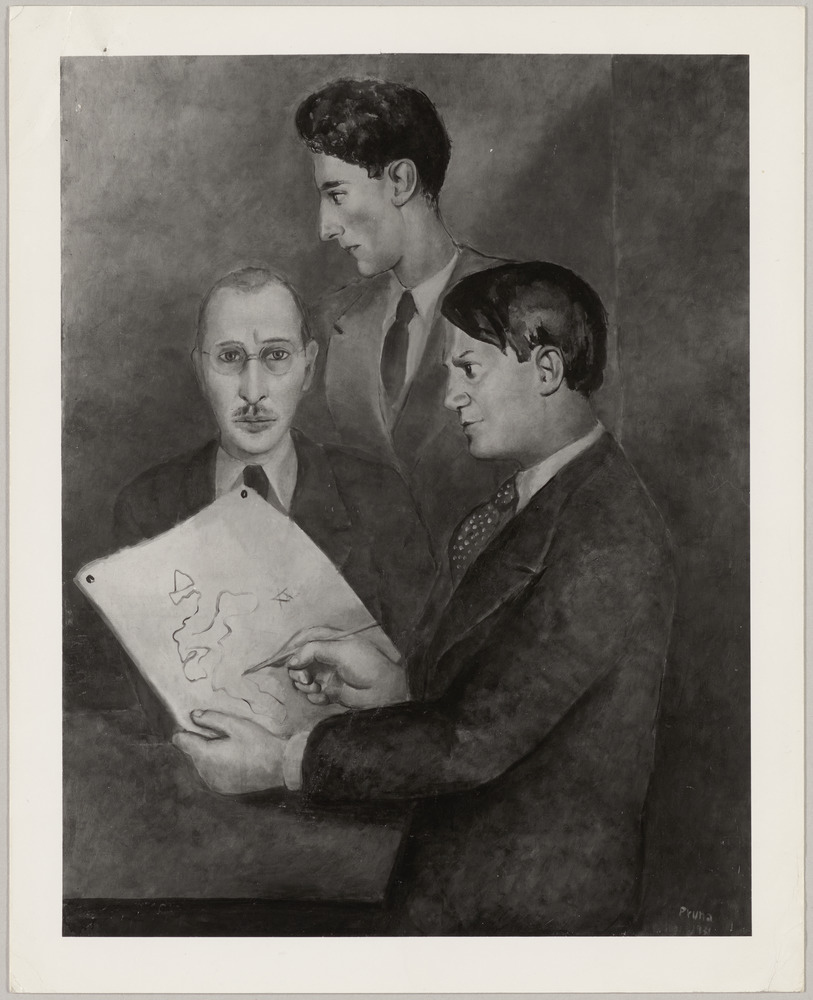 Reproduction représentant Pablo Picasso, Jean Cocteau et Igor Stravinsky par Pedro Pruna