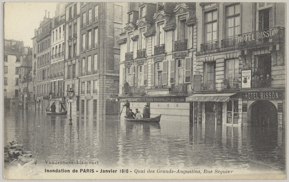 Rue Séguier, quai des Grands-Augustins, lors de la crue de janvier 1910, Paris